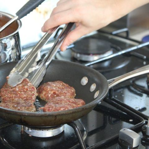 - Add the cubed chicken and continue stir frying on medium high heat until the chicken is lightly browned.